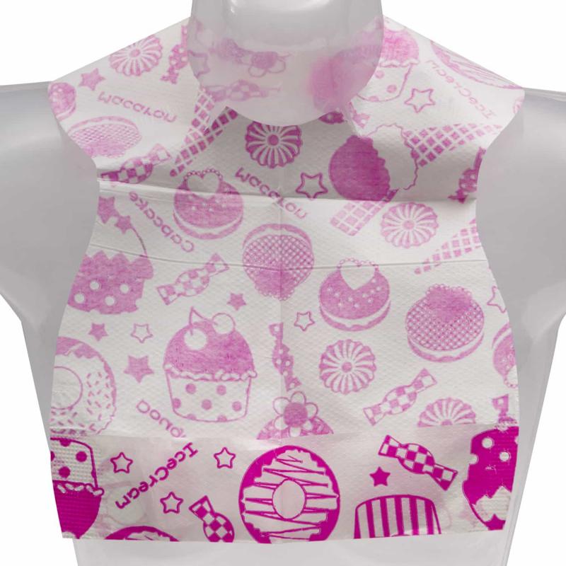 Disposable Baby Bib, Waterproof Paper + PE Film 24.5*34.5cm with Pocket, Multi-Color for Home & Restaurant Use