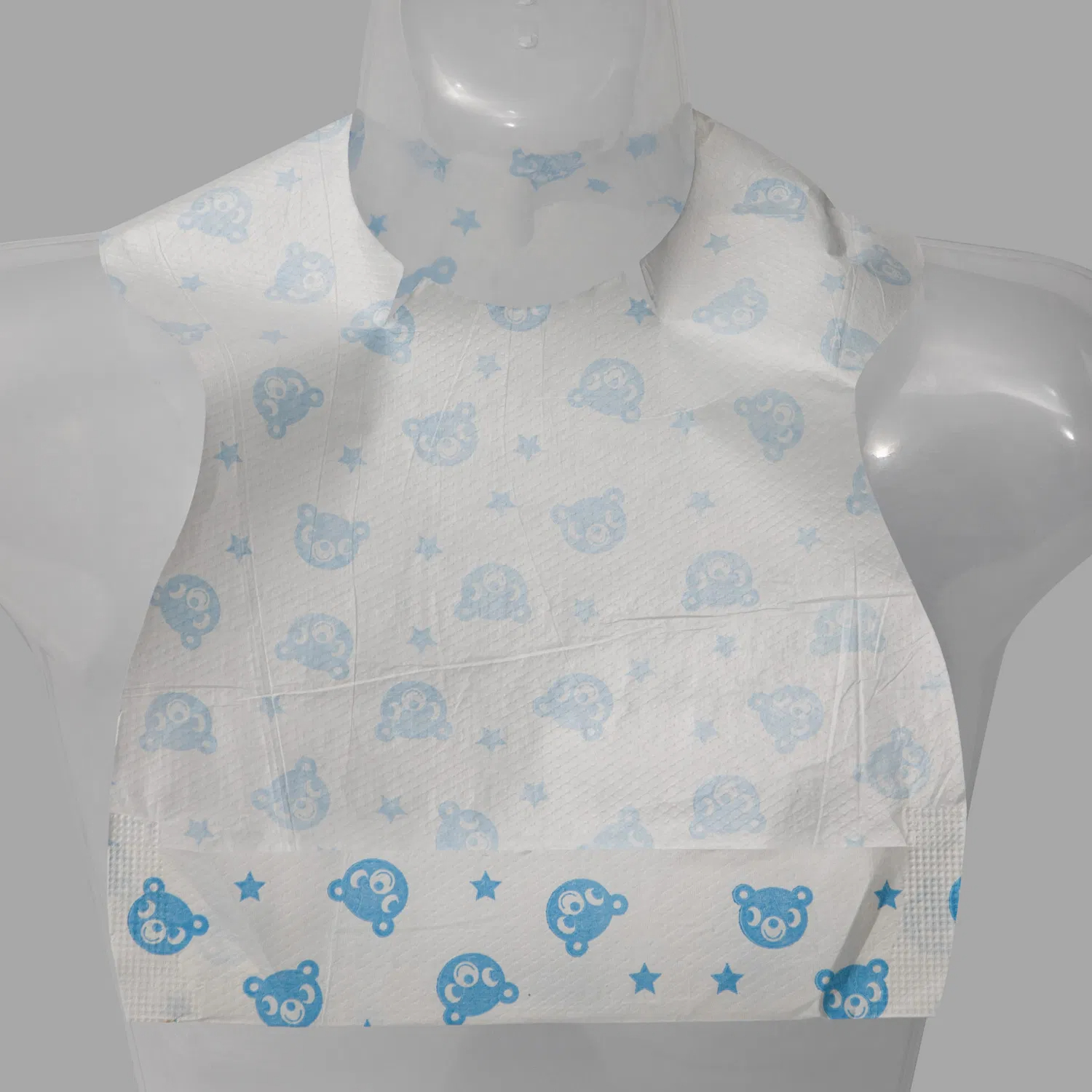Waterproof protection: PE film laminated surface prevents liquid penetration — essential for waterproof disposable baby bibs.
