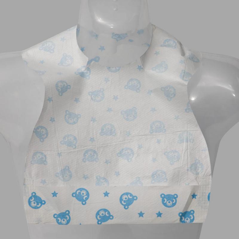 A: The PE film laminated baby bibs use a continuous laminated layer that provides reliable waterproof protection during typical mealtime spills — not just splash resistance — so they work well as waterproof disposable baby bibs.